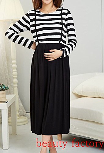 beauty factory マタニティ ワンピース ロング スカート シンプル 白黒 ボーダー柄 授乳口付き 選べる 長袖 半袖 サイズ