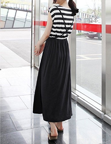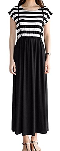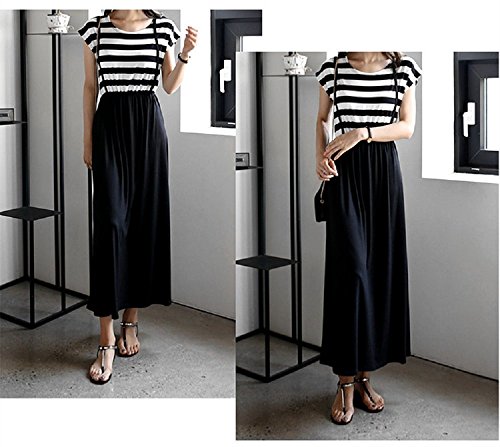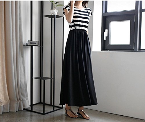 beauty factory マタニティ ワンピース ロング スカート シンプル 白黒 ボーダー柄 授乳口付き 選べる 長袖 半袖 サイズ (L, 半袖)