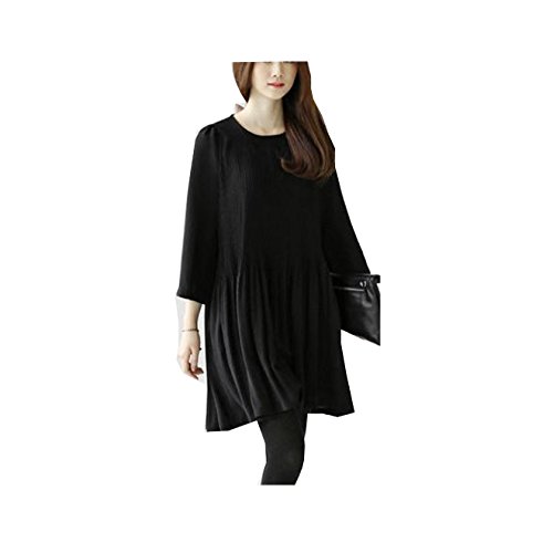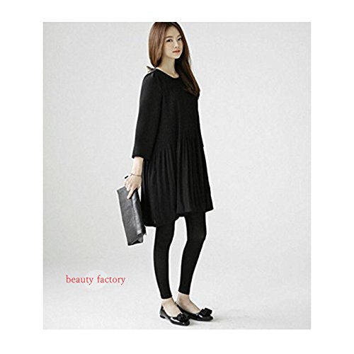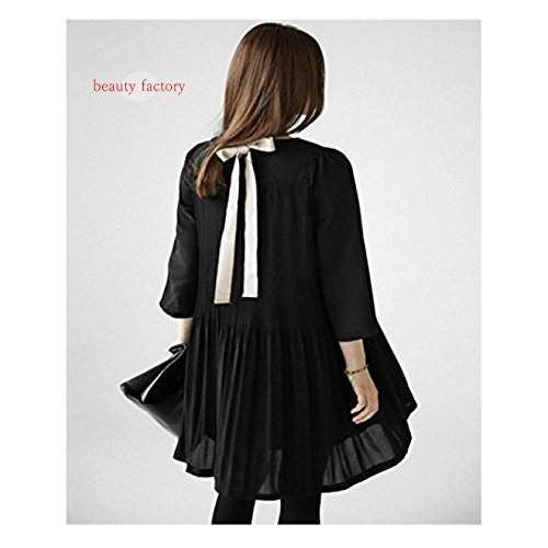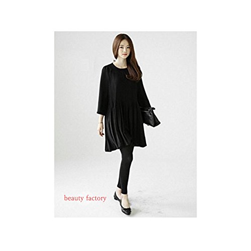 beauty factory レディーズ ワンピース 七分丈 マタニティ チュニック 黒ワンピース ブラック 選べる サイズ (M)