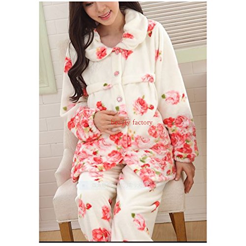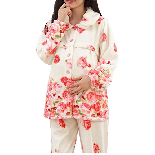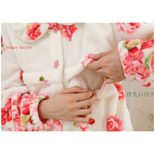beauty factory 春 秋 冬 マタニティ パジャマ 授乳口 付き 前開き 長袖 ホワイト 薔薇 バラ 選べる 3サイズ L XL XXL
