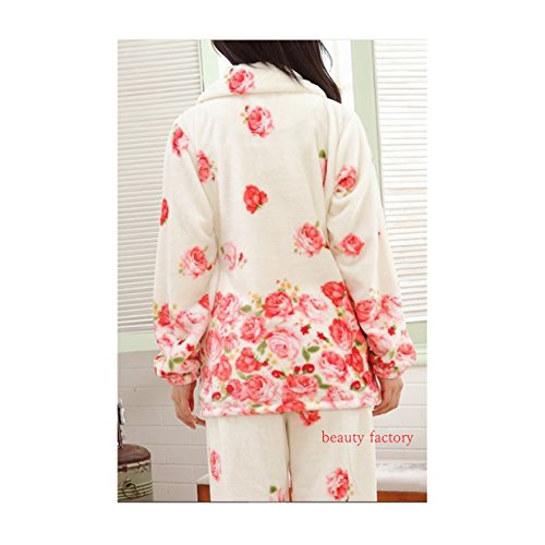 beauty factory 春 秋 冬 マタニティ パジャマ 授乳口 付き 前開き 長袖 ホワイト 薔薇 バラ 選べる 3サイズ L XL XXL (XXL)