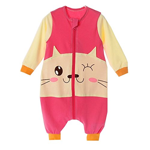 beauty factory 赤ちゃん ベビー 子供 用 ロンパース カバーオール 猫柄 ねこ 選べる カラー サイズ (M, レッド)