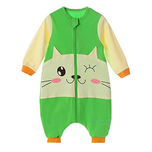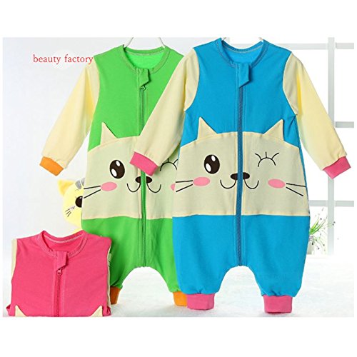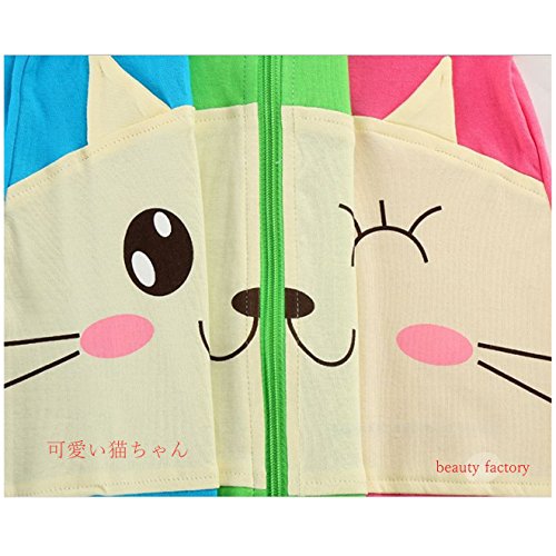 beauty factory 赤ちゃん ベビー 子供 用 ロンパース カバーオール 猫柄 ねこ 選べる カラー サイズ (M, グリーン)