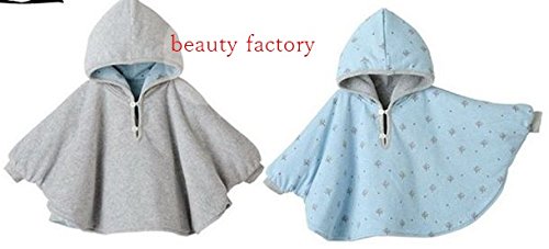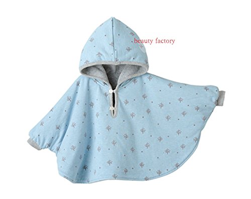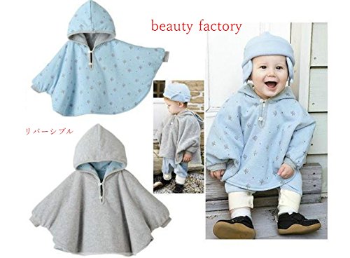 beauty factory リバーシブル タイプ フード 付き パーカー ベビー ポンチョ 子供 用 選べる 3色 (S(80~90), ライトブルー)