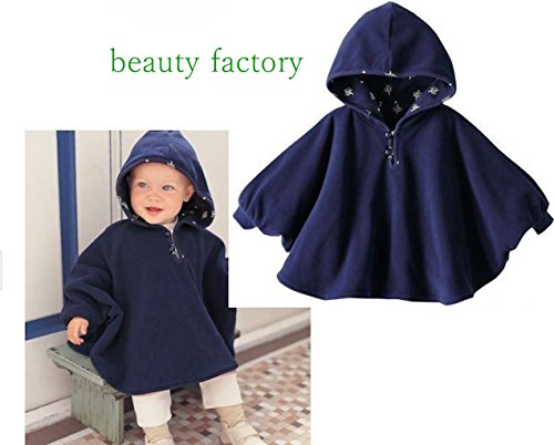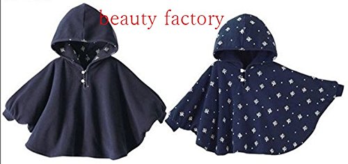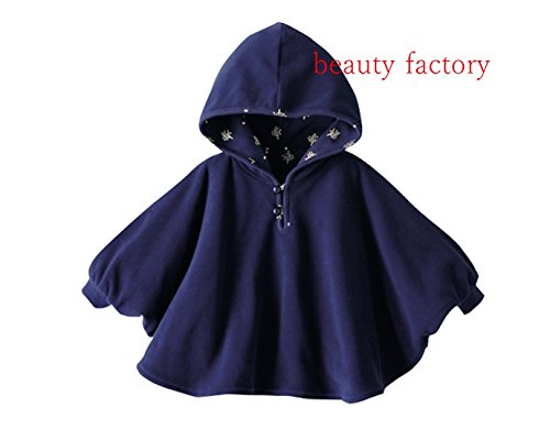 beauty factory リバーシブル タイプ フード 付き パーカー ベビー ポンチョ 子供 用 選べる 3色 (S(80~90), ネイビー)