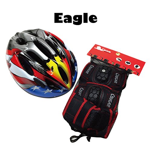J@G 子供用 自転車用 ヘルメット ヒジ ヒザ 手首 プロテクター セット ナップサック付き 超軽量 可愛い (Mサイズシルバー(イーグル)(SET))