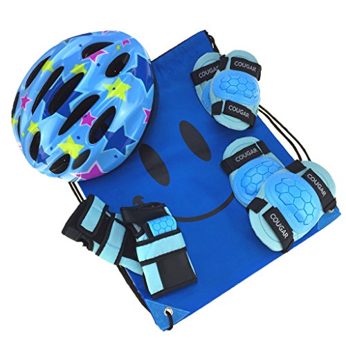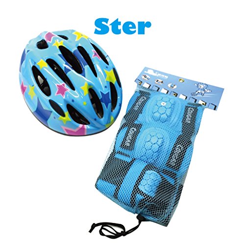 J@G 子供用 自転車用 ヘルメット ヒジ ヒザ 手首 プロテクター セット ナップサック付き 超軽量 可愛い (Mサイズブルー(スター)(SET))