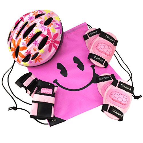 J@G 子供用 自転車用 ヘルメット ヒジ ヒザ 手首 プロテクター セット ナップサック付き 超軽量 可愛い (Mサイズピンク(フラワー1(SET)))