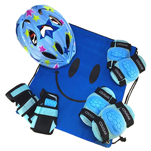 J@G 子供用 自転車用 ヘルメット ヒジ ヒザ 手首 プロテクター セット ナップサック付き 超軽量 可愛い (Sサイズ スター(SET))