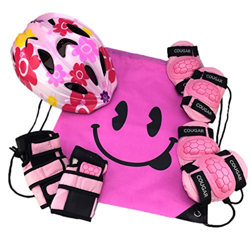 J@G 子供用 自転車用 ヘルメット ヒジ ヒザ 手首 プロテクター セット ナップサック付き 超軽量 可愛い (Sサイズ フラワー2(SET))