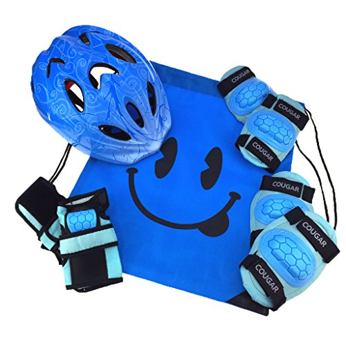 J@G 子供用 自転車用 ヘルメット ヒジ ヒザ 手首 プロテクター セット ナップサック付き 超軽量 可愛い (Sサイズ ブルーライン(SET))