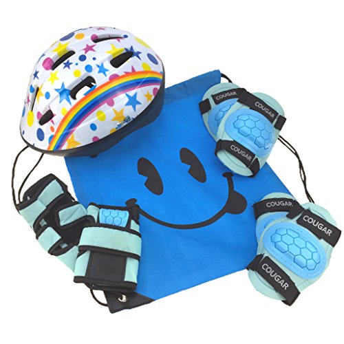 J@G 子供用 自転車用 ヘルメット ヒジ ヒザ 手首 プロテクター セット ナップサック付き 超軽量 可愛い Mサイズ (A-type2 ホワイトxブルー)