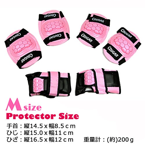 - Mプロテクターサイズ:(約)手首:縦14.5×幅8.5cm、ひじ:縦15×幅11cm、ヒザ:縦16.5×幅12cm 重量計:(約)200g Sプロテクターサイズ:(約)手首:縦13.5×幅7.5cm、ひじ:縦13.5×幅10cm、ヒザ:縦14.0×幅11cm 重量計:(約)180g