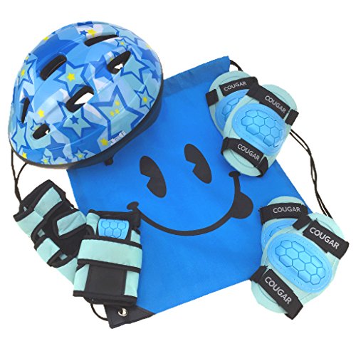 J@G 子供用 自転車用 ヘルメット ヒジ ヒザ 手首 プロテクター セット ナップサック付き 超軽量 可愛い Mサイズ (A-type4 ブルー)