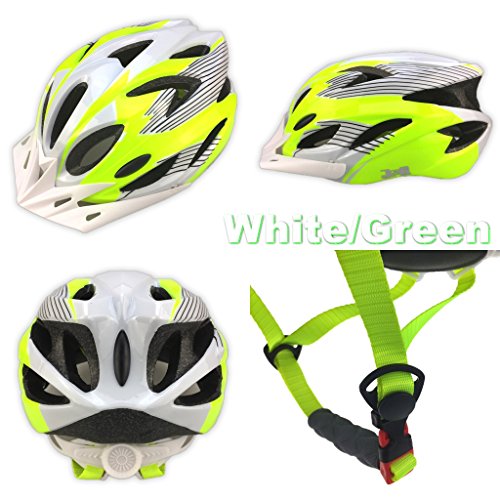 J@G 自転車 ヘルメット 子供 大人 ナップサック付き 53~63cm 小学生 以上 超軽量 11カラー (A9-ホワイト/グリーン)