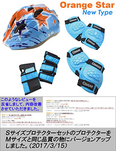 J@G 子供用 自転車用 ヘルメット ヒジ ヒザ 手首 プロテクター セット ナップサック付き 超軽量 可愛い (Sサイズ オレンジスター(SET))
