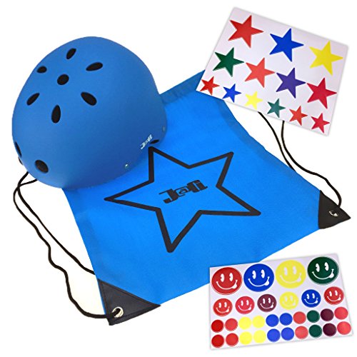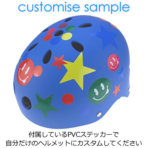 J@G 自転車 子供 大人用 ヘルメット カスタマイズステッカーシート ナップサック付き 10カラー 3サイズ (J-ブルー(艶消し), M(54-58cm))