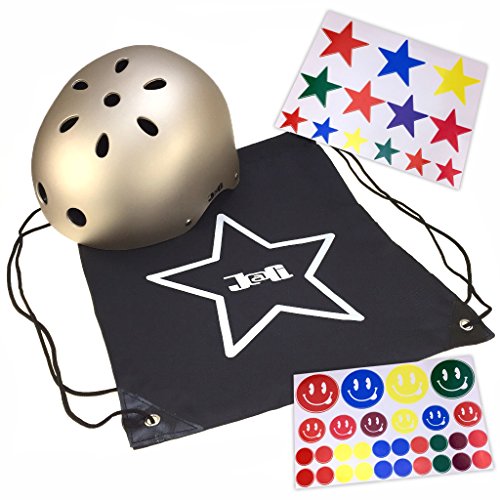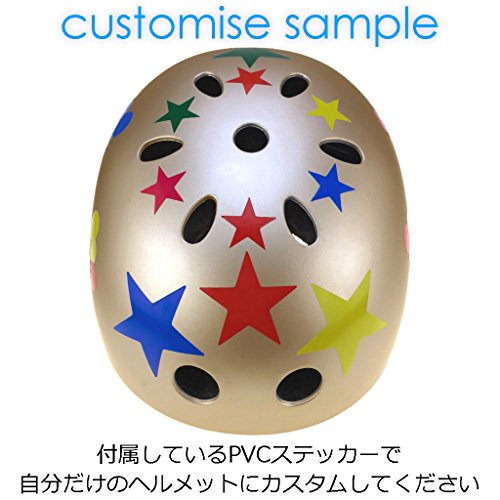J@G 自転車 子供 大人用 ヘルメット カスタマイズステッカーシート ナップサック付き 10カラー 3サイズ (C-ゴールド(艶消し), S(50-54cm))
