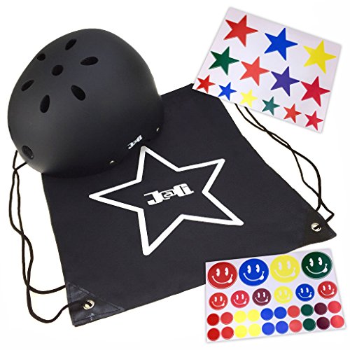 J@G 自転車 子供 大人用 ヘルメット カスタマイズステッカーシート ナップサック付き 10カラー 3サイズ (A-ブラック(艶消し), S(50-54cm))