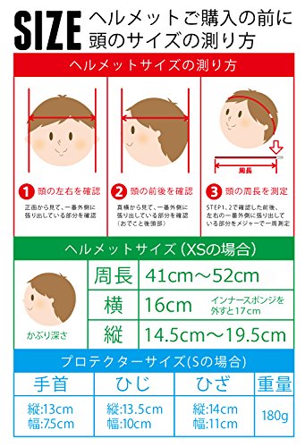 - 超軽量の子供用ヘルメットとプロテクターのセットです、ダイアル式の調整ネジで簡単にサイズ調整ができます Mサイズ:頭囲:50cm〜58cm 幅:17.0cm 重量:約210グラム(A-type:約240グラム) Sサイズ:頭囲:48cm〜55cm 幅:16.0cm 重量:約185グラム XSサイズ:頭囲:41cm〜52cm 幅:16.0cm 重量:約190グラム