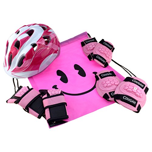 J@G 子供用 自転車用 ヘルメット ヒジ ヒザ 手首 プロテクター セット ナップサック付き 超軽量 可愛い (1.XSサイズ ピンク)