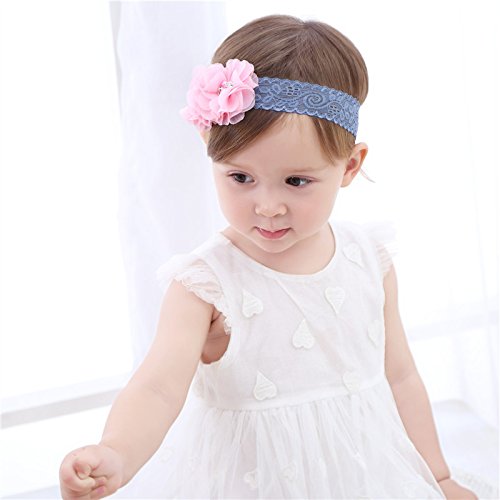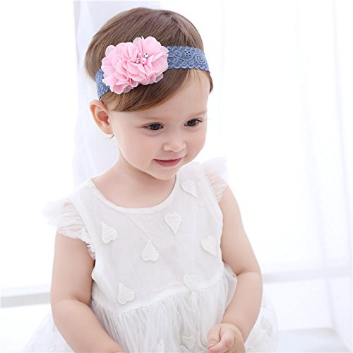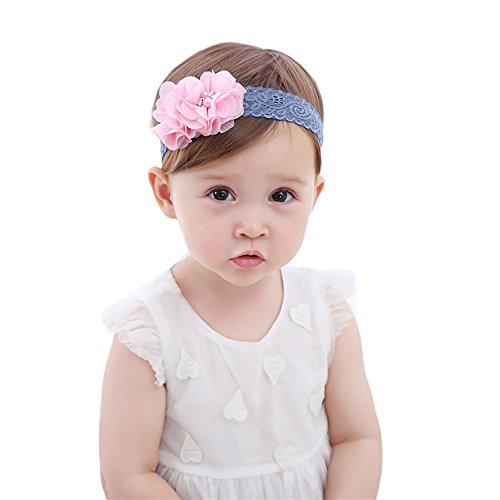 J-LAVIE ベビー キッズ用 かわいいお花デザイン ヘアバンド 新生児 赤ちゃん ベビー ヘアアクセサリー ヘアーバンド 髪飾り 花 ヘッドドレス (ピンク)