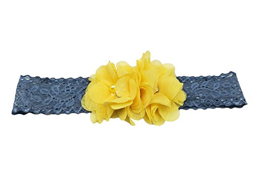 J-LAVIE ベビー キッズ用 かわいいお花デザイン ヘアバンド 新生児 赤ちゃん ベビー ヘアアクセサリー ヘアーバンド 髪飾り 花 ヘッドドレス (イエロー)