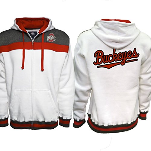 Ohio State Buckeyes刺繍フルZipホワイトフード付きスウェットシャツ L