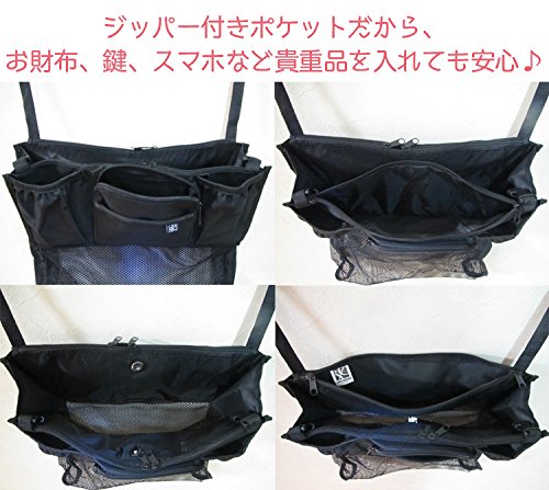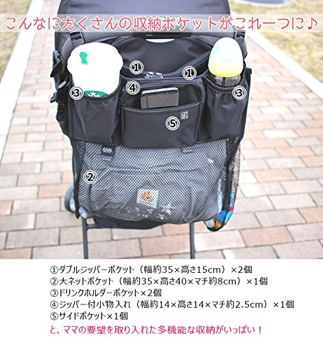 - 【製品サイズ】:幅約35×高さ45×マチ約8cm ダブルジッパーポケット(幅約35×高さ15cm)×2個、大ネットポケット(幅約35×高さ45×マチ約8cm)×1個、ドリンクホルダーポケット×2個、サイドポケット付ジッパー小物入れ(幅約14×高さ14×マチ約2.5cm)×1個【左右間幅48cm以下のハンドル(押し手)に取り付け可能】