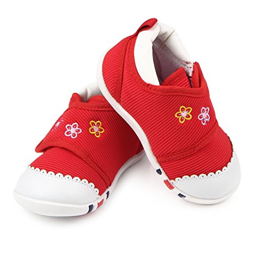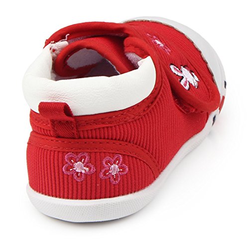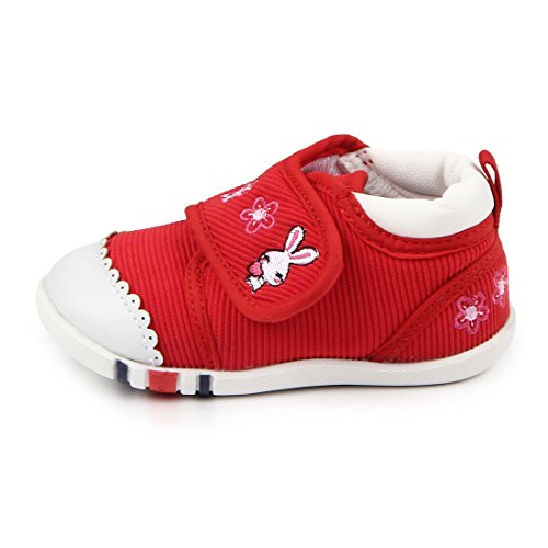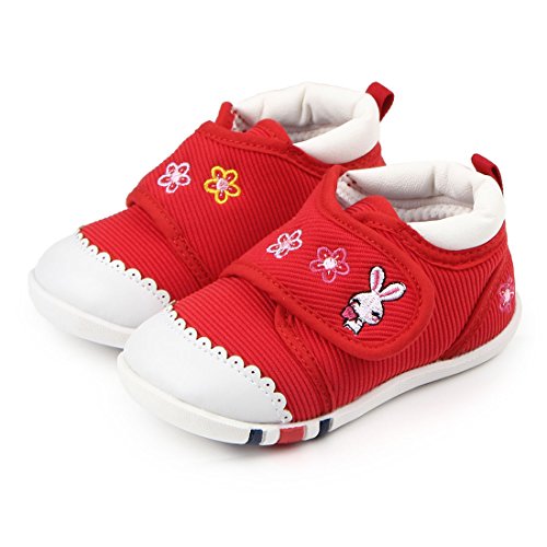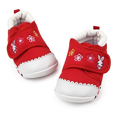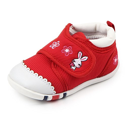 JACKSHIBO ベビーシューズ ファーストシューズ 男の子 女の子 ベビースニーカー 刺繍 歩行サポート 滑り止め 秋 レッド+兎柄 13.0cm