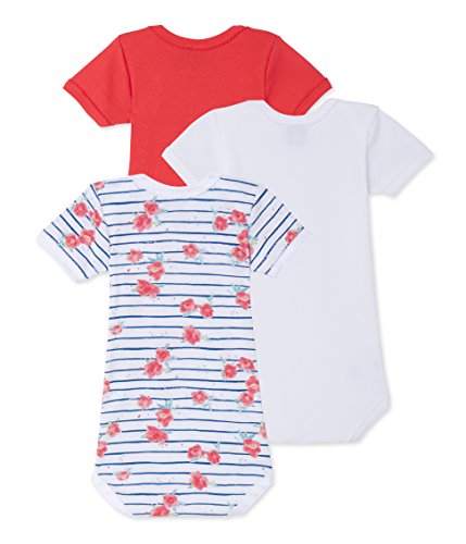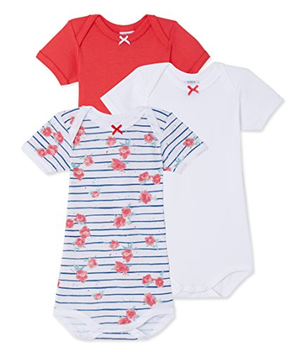Petit Bateauベビー女の子3パック半袖花柄/ストライプ/ソリッドBodysuits