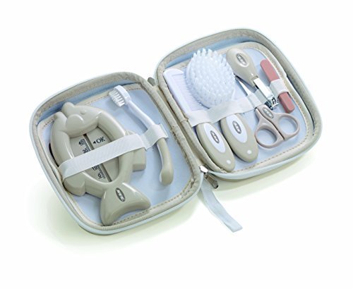 Soft brush for baby's delicate skin;A comb for when baby has lot of hair;A baby toothbrush to help keep new teeth and gums healthy;Grip safety scissors, with rounded tips and a baby nail clipper;6 nail files (baby emery boards) are also included
