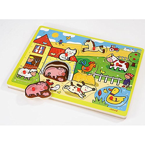 ツマミがついたピースをはめ込むと動物の鳴き声が鳴ります。