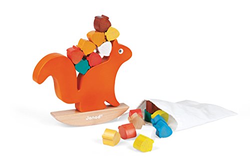 A solid wood balancing game from Janod. The Nutty Squirrel balance game includes a squirrel, a balancing scale and 20 colourful hazelnuts to pile up without making them fall. Includes a cotton bag for easy storage. Water based paint.