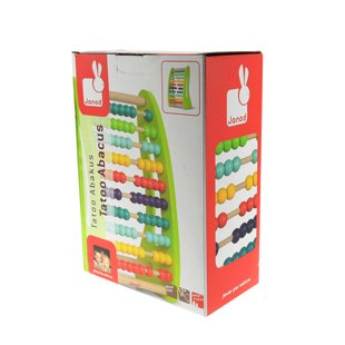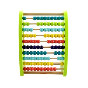 JANODの木のおもちゃになります。とてもカラフルなビーズを触って、かぞえて、「いろ」、「すうじ」を楽しく学ぶことができます。