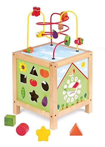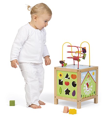 Multi-levels and 5 activities for hours of fun and learning;Designed in France;Vibrant non-toxic colors;Painted and plain wood