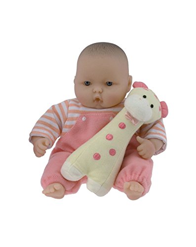 Special little doll manufactured by Berenguer. Soft body, vinyl arms and legs. Comes with cute little outfit and a little animal. Assorted animal selection and various colored outfits. Facial expressions vary as well. 7.5' doll. Comes in original retail packaging.