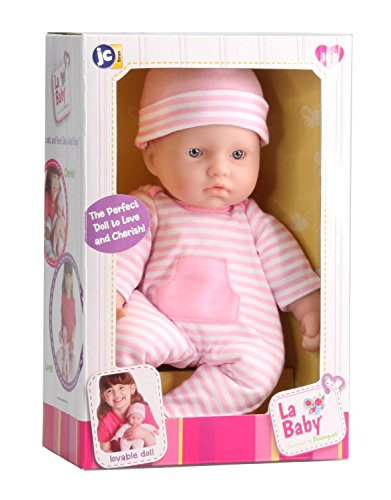 Looking for a way to introduce a child 18 months old or older to a newborn baby? If so, then you (and the lucky child you gift this to) will fall in love with the La Baby 11-inch play doll! The following reasons explain why the La Baby is perfect for toddlers, and a favorite for pre-schools: + 11??? size & 8 ounce weight makes it easy to carry around. + Sculpted hair & fixed open eyes means less moving parts. + Fragrance free & hand washable body helps you keep it as good as new for years. Many of our customers tell us how their child loves to cuddle with the La Baby just before bed. Now isn???t that sweet! The La Baby 11-inch helps children learn what it???s like to take care of others. Baby dolls of-fer kids a way to develop their self-help skills because children are hands-on learners. Dolls teach children how to take care of another person, add and remove clothing, interact with small objects, and pointing out body parts (like eyes, ears, mouth, and nose). In addition, dolls help children learn invaluable social skills, like communication. Wouldn???t you agree that speaking to others is an important skill in life? JC Toys is a family run and operated business with origins dating back to 1982 in south-east Spain - one of the top major toy-making and design centers in the world. Today, you can find 100s dolls, playtime accessories, and more by JC Toys on www.amazon.com/jctoys Add smiles to a young child???s face today by adding this La Baby doll to your cart now - thank you!