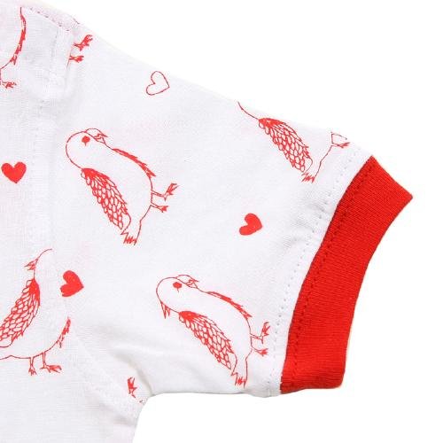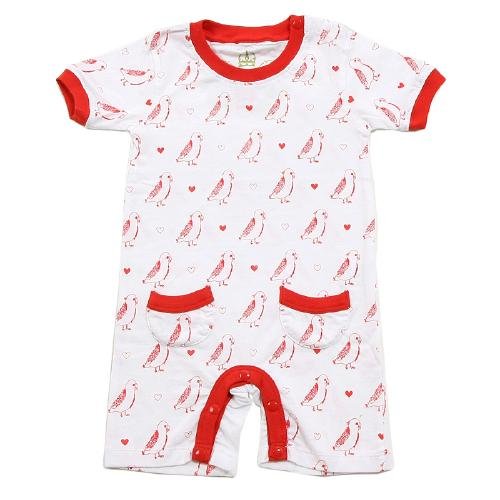 - 【商品のコメント1】かわいい!人気のハート&インコ柄。半袖ロンパです。厚すぎない生地だから動きやすく汗っかきのお子様におススメです。オリジナリティー豊かなお洋服は子供の創造力を育みます。