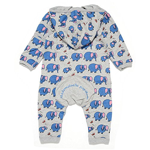 Mademoiselle papillon ゾウさんファミリー フード付き ジップアップ カバーオール 【ミスティグレーsize:90】