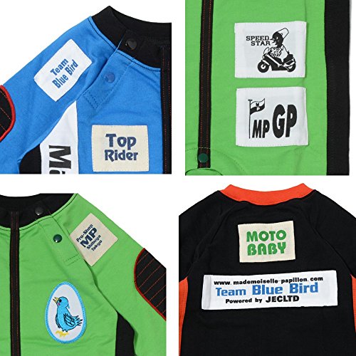 - 【商品のコメント1】あつまれ!ちびっ子ライダー!目指せトップライダー!バイク乗りの憧れ、ライダースーツタイプのカバーオールです。好評のやわらかコットン100%。薄手のスウェット生地だから動きやすい。活発なお子様におススメのアイテムです。