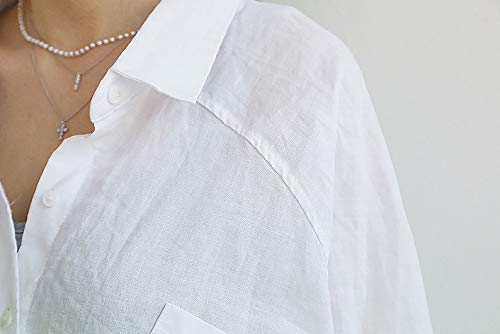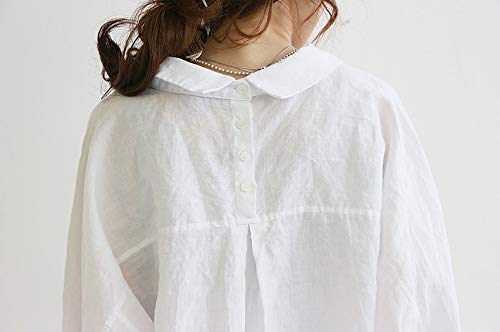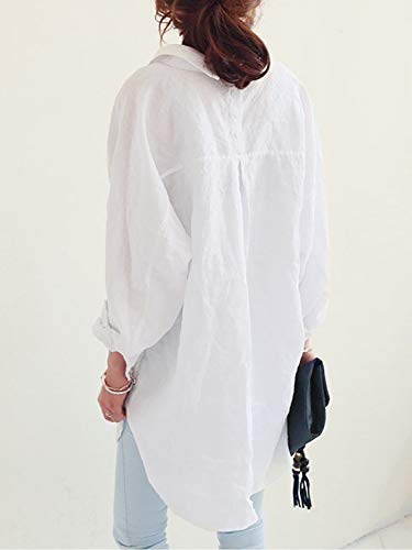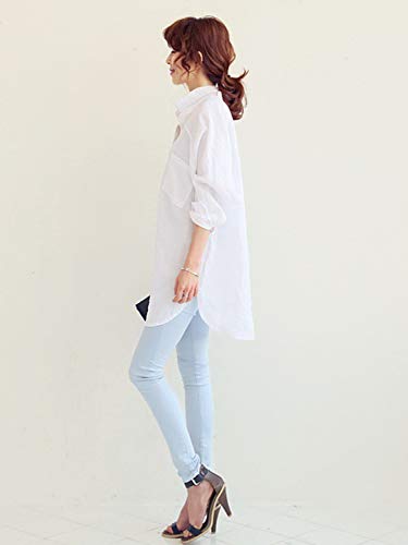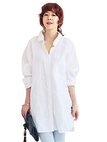 シャツ ワンピース レディース ゆったり 長袖 無地 大人 可愛い バック ボタン ロング チュニック丈 マタニティウェア 授乳服 大きいサイズ シンプル レディース S ~ 3XL (L, ホワイト)