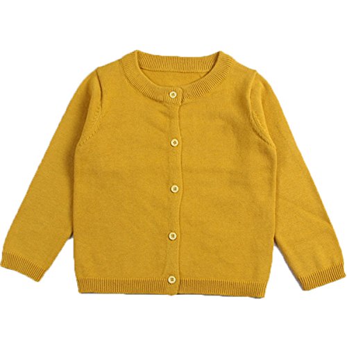 jeleuon Little GirlsキュートクルーネックボタンダウンソリッドFineニットカーディガンセーター カラー: ブラウン