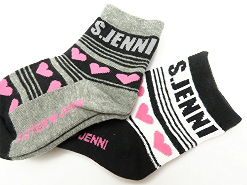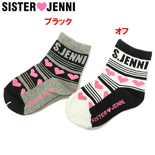 (ジェニィ)JENNI ハート ボーダー 3Pクルーソックス S(13~15センチ) ブラック(030)