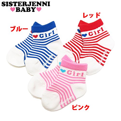 (ジェニィベビー)JENNI BABY ロゴ入り ボーダー柄 クルーソックス XXS(9~11センチ) ブルー(050)