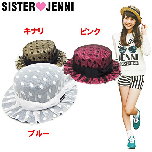 (ジェニィ)JENNI チュール付 ドット柄 カンカン帽 54センチ ブルー(050)