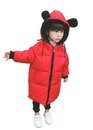 JIANGWEI 女の子 男の子 コート 子供服 綿入れ コート 冬のダウン ロング 耳付き 暖かい 可愛い レッド100