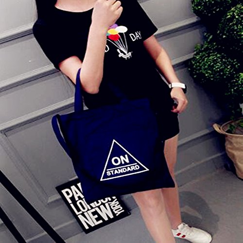 JIEKERY キャンバス バッグ トート バッグ ショルダー バッグ ハンドバッグ 可愛い 帆布 カジュアル 多機能 多用途 英字 (ブルー)