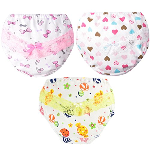 JIEYA 赤ちゃんの 女の子 の幼児 3パックコットントレーニングパンツレースボウノットのプリントブリーフ (110(0~2歳), B)