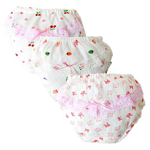 JIEYA レースのちょう結びの3パックの赤ちゃんの女の子の綿のブリーフトレーニングパンツ